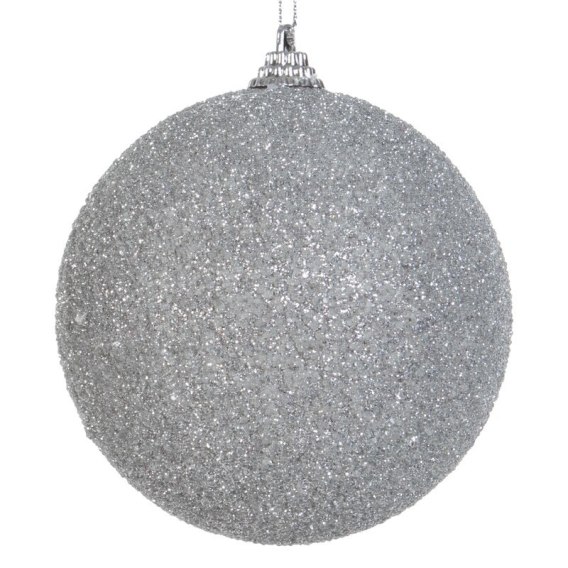Bombka plastikowa zdobiona drobnymi cekinkami i brokatem kolor: srebrny, Skład: 100% poliester