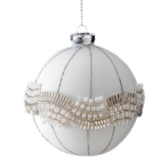 Bombka szklana zdobiona perełkami kolor: biały, Skład: 100% szkło