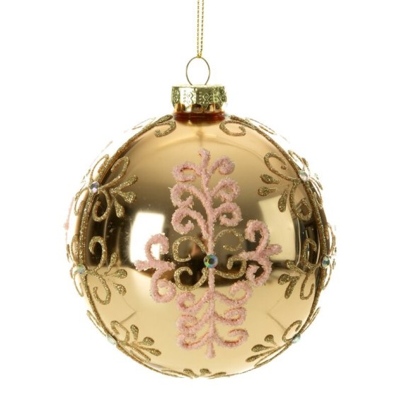 Bombka szklana z ozdobnym wzorem z brokatu kolor: złoty, Skład: 100% szkło