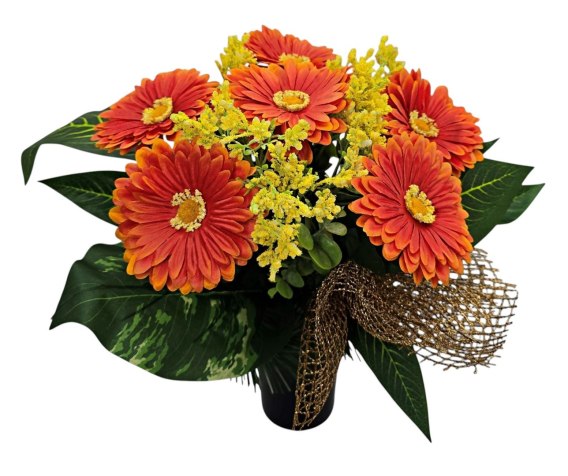 Kompozycje nagrobne z obciążeniem z wysokiej jakości sztucznych kwiatów i roślin.