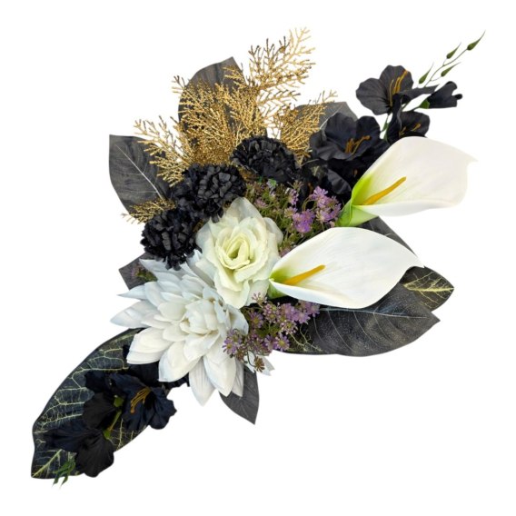 Bukiet flakon stroik na cmentarz biało czarna kompozycja na grób