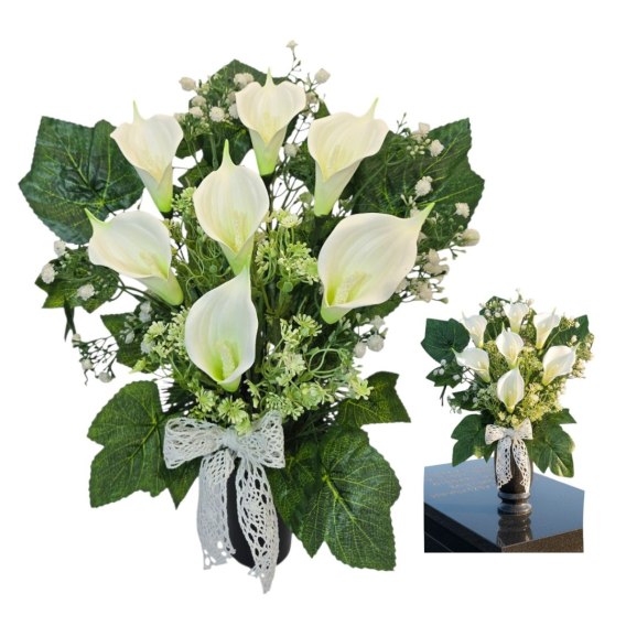 Bukiet flakon stroik na cmentarz sztuczne kwiaty kompozycja kwiatowa kalie
