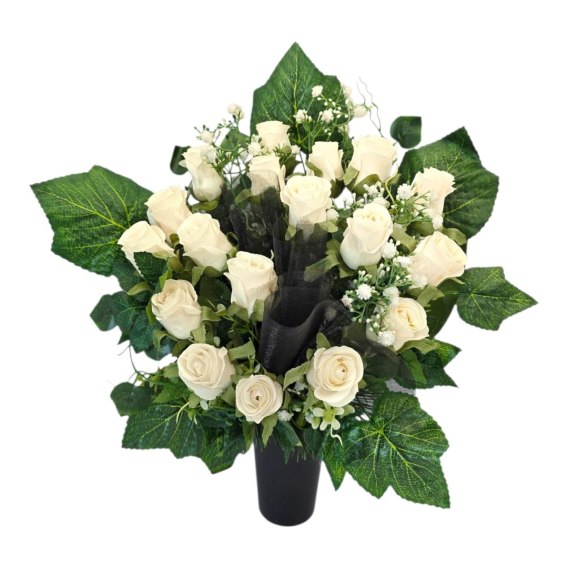 Bukiet flakon stroik na cmentarz sztuczne kwiaty róże kompozycja kwiatowa