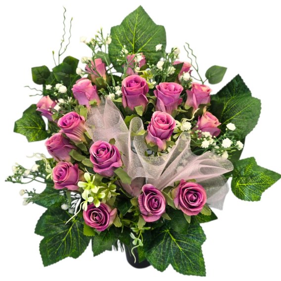 Bukiet flakon stroik na cmentarz sztuczne kwiaty róże kompozycja kwiatowa