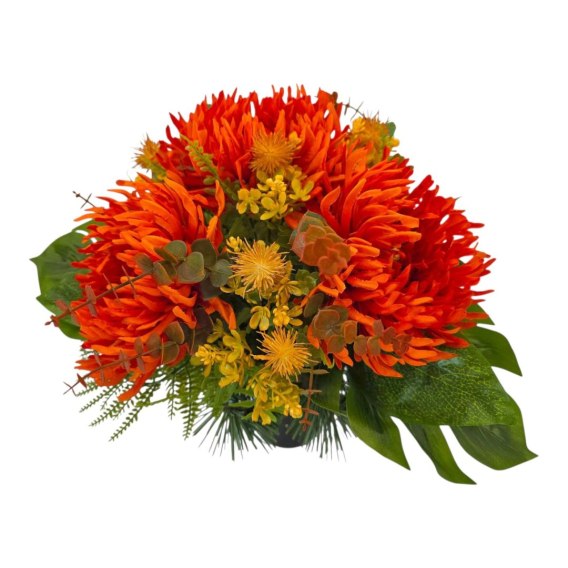 Stroik cechuje się unikalną kompozycją sztucznych kwiatów. Starannie dobrane kwiaty są niezwykle realistyczne, dodając wiązance autentyczności i podkreślając jej uroczysty charakter.