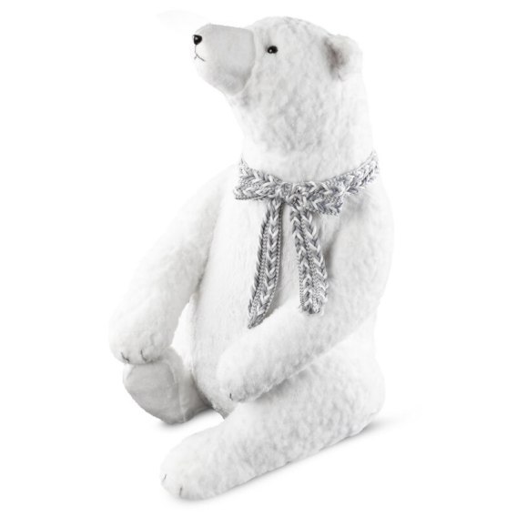 Duża figurka świąteczna dekoracyjna NIEDŹWIEDZ w plecionym szaliku z lśniącymi drobinkami