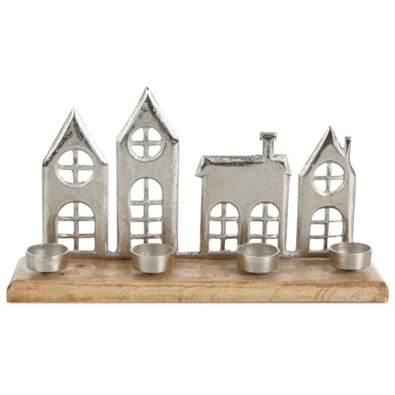 Świąteczna figurka dekoracyjna szerokość: 40 cm, długość: 10 cm, kolor: srebrny, Skład: drewno, metal