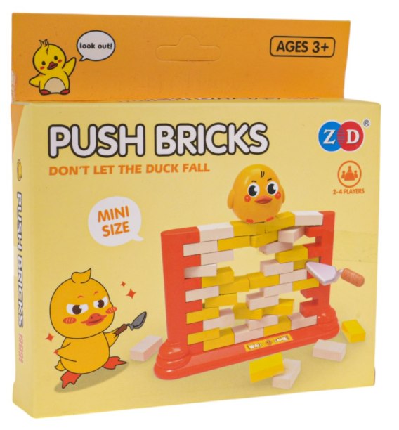 Gra zręcznościowa Ściana dla dzieci od 3-go roku życia. Gra polega na zbudowaniu ściany z klocków na specjalnie do tego przeznaczonej podstawce, a następnie wypychaniu z muru poszczególnych cegiełek, specjalnie do tego przeznaczoną kielnią. Na górze muru znajduje się figurka kaczki, musimy uważać, by nie spadła. Wygrywa ten, który wypychając cegły, nie spowoduje zawalenia się muru i upadku kaczki. W grę możemy grać samodzielnie, lub w więcej osób. Gra uczy koncentracji, logicznego myślenia, poprawia koordynację ręka-oko.
