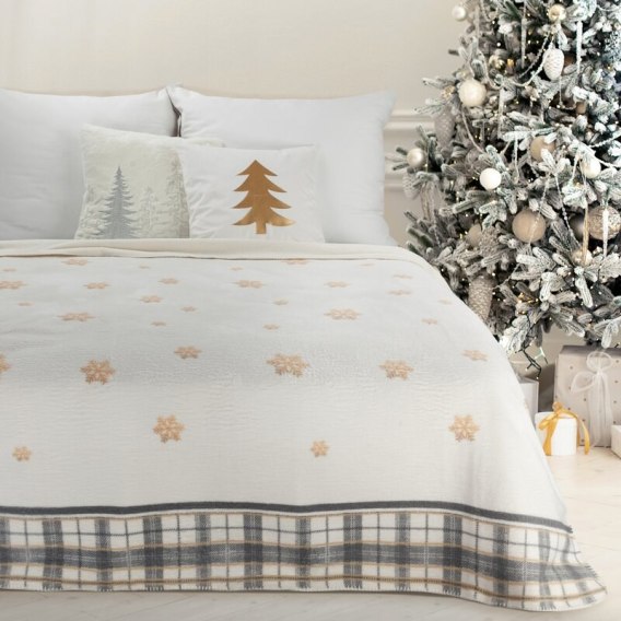 Wyjątkowo miękki w dotyku koc ze wzorem świątecznym szerokość: 200 cm, długość: 220 cm, kolor: biały, Gramatura: 470 GSM GSM, Skład: 60% bawełna, 40% akryl