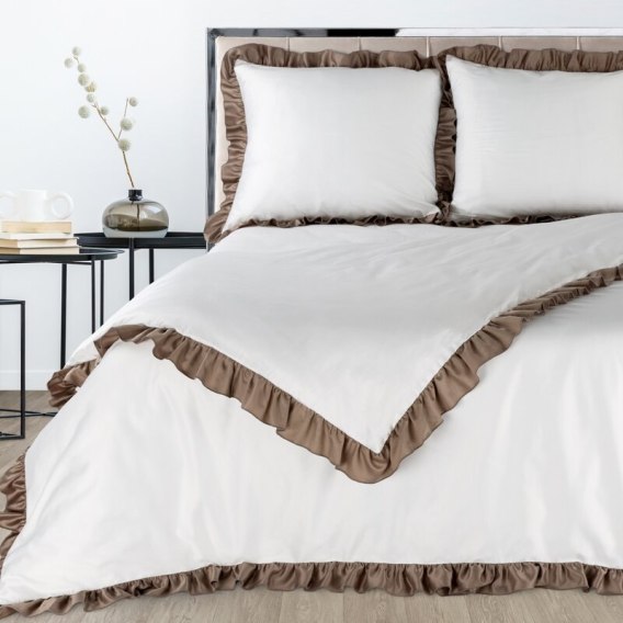 Komplet pościeli z bawełną, zdobionej falbanką szerokość: 160 cm, długość: 200 cm, kolor: biały, Gramatura: 125 GSM, Skład: 55% bawełna, 45% poliester