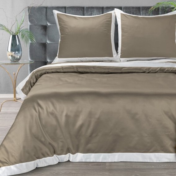 Pościel satynowa z bawełną z ozdobną kantą w kontrastowym odcieniu szerokość: 220 cm, długość: 200 cm, kolor: ciemnobeżowy, Gramatura: 125 GSM, Skład: 55% bawełna, 45% poliester