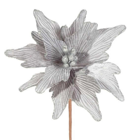 KWIAT ŚWIĄTECZNY DEKORACYJNY 107 32 X 15 CM SREBRNY