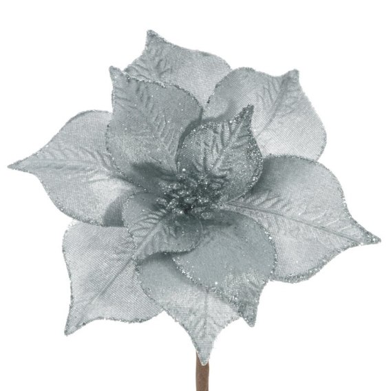 KWIAT ŚWIĄTECZNY DEKORACYJNY 54C 20 CM SREBRNY