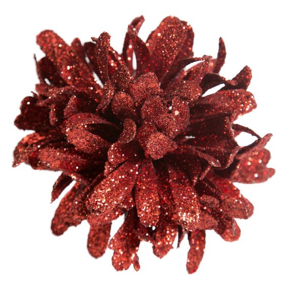 Kwiat z tworzywa sztucznego o wąskich płatkach obsypany brokatem kolor: czerwony