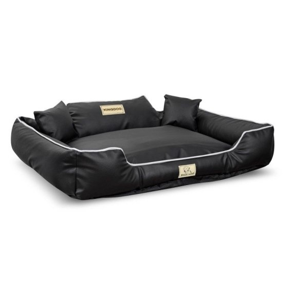 Wykonane z ECOSKÓRY, ROZBIERALNE z zamkiem, antypoślizgowe legowisko dla psa w kolorze czarnym z białą lamówką, PERSONALIZOWANE imieniem pupila!