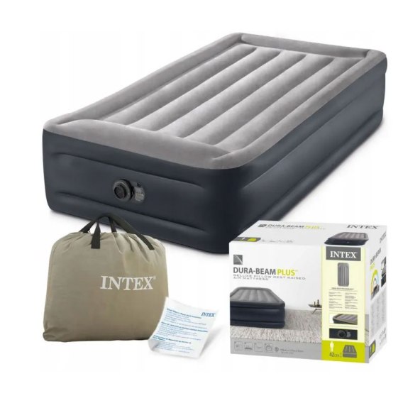 Materac dmuchany jednoosobowy 191x99x42 cm z wbudowaną pompką elektryczną łóżko INTEX 64132
