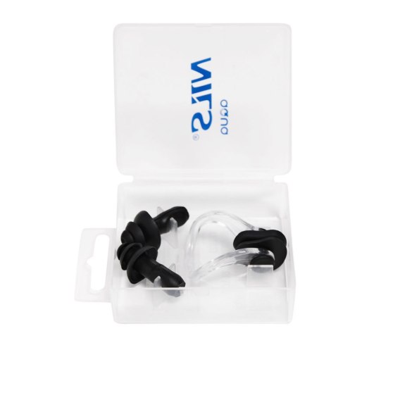 NQAW30 CZARNY ZESTAW PŁYWACKI SILIKONOWE ZATYCZKI DO USZU I NA NOS NILS AQUA
