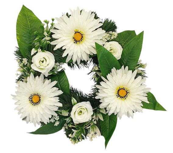 Dzięki odporności na wszelkie warunki atmosferyczne, nasz wieniec pogrzebowy pozostanie nienaruszony i piękny, niezależnie od pogody.