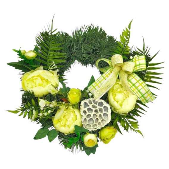 Realistyczne i naturalne kwiaty: Nasz stroik zawiera unikalną kompozycję kwiatów, które wyglądają naturalnie i realistycznie, dodając autentyczności oraz elegancji.