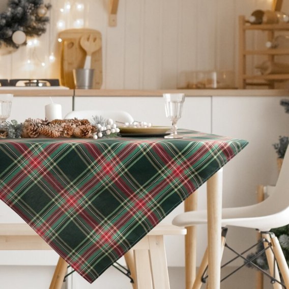 Obrus świąteczny 85x85 cm czerwono, zielony bawełniany zdobiony szkocką kratą AURORA