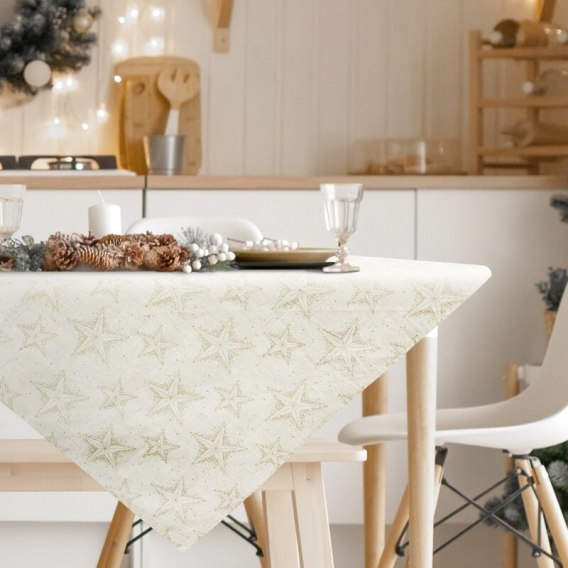 Obrus świąteczny WINTER z bawełnianej tkaniny zdobiony subtelnym wzorem gwiazdek