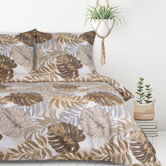 Komplet pościeli z mikrowłókna z nadrukiem szerokość: 220 cm, długość: 200 cm, kolor: beżowy, Gramatura: 75 GSM, Skład: 100% poliester
