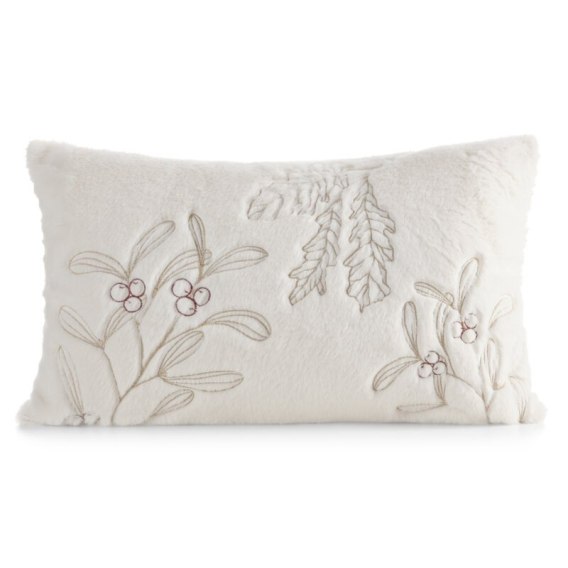 Futrzana świąteczna poszewka dekoracyjna z ozdobnym haftem szerokość: 30 cm, długość: 50 cm, kolor: kremowy, Gramatura: 220 GSM, Skład: 100% poliester
