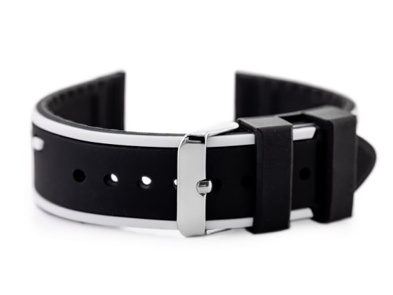 Pasek gumowy do zegarka U06 - czarny/biały - 20mm
