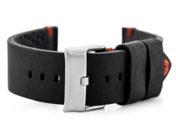 Pasek skórzany do zegarka W93 - czarny/czerw. 22mm