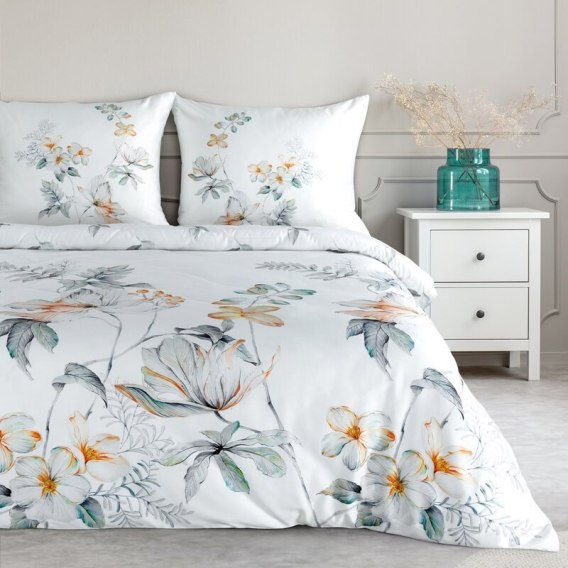 Pościel 220x200 cm bawełniana kolor biały, pomarańczowy z motywem roślinnym AMELIA Eurofirany Premium