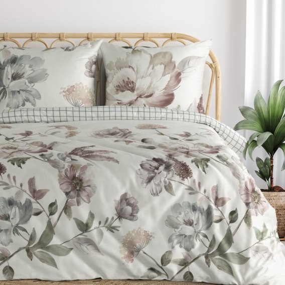 Pościel 220x200 cm bawełniana kolor biały, pudrowy z motywem kwiatowym ROSALIA Eurofirany Premium