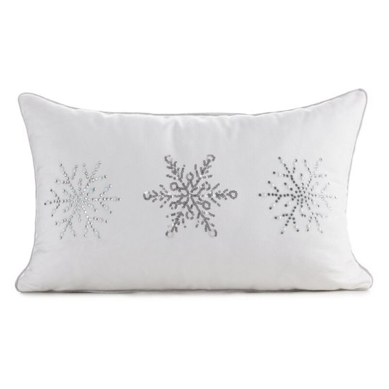 Poszewka na poduszkę świąteczna 30x50 cm biało, srebrna zdobiona diamencikami