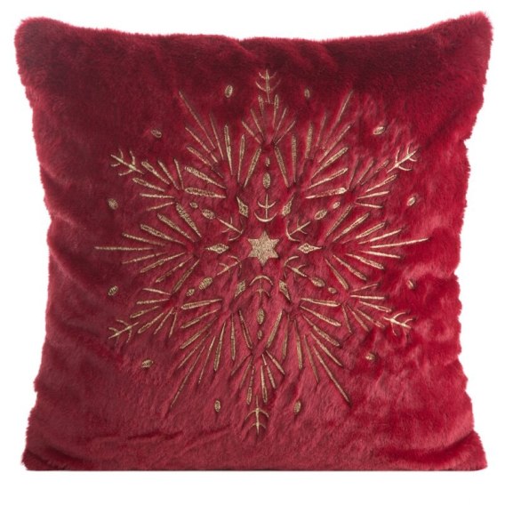 Poszewka na poduszkę świąteczna 45x45 cm bordowo, szampańska z przyjemnego futerka zdobiona haftem śnieżynki