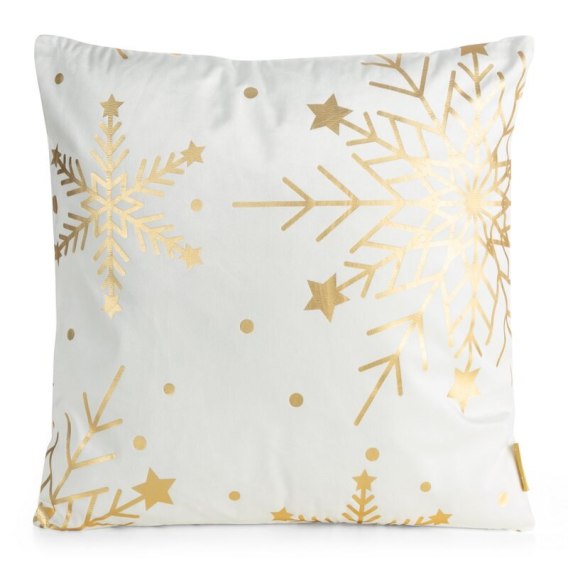 Poszewka na poduszkę świąteczna 45x45 cm welwetowa biała zdobiona nadrukiem szampańskich śnieżynek
