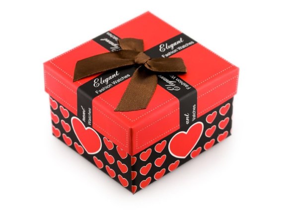 Prezentowe pudełko na zegarek - serduszka czerwone