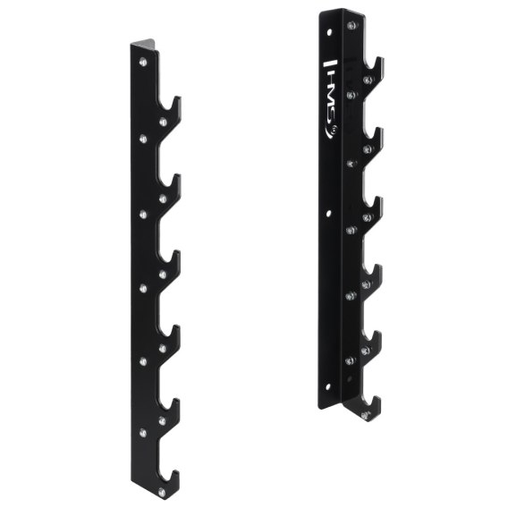 Wieszak umożliwia poziome przechowywanie do 6 gryfów, zapewniając im stabilność i ochronę przed uszkodzeniami. Dzięki solidnej konstrukcji, nawet przy pełnym obciążeniu do 180 kg, STR46 zachowuje pełną wytrzymałość i bezpieczeństwo użytkowania. Pamiętaj, by przymocować wieszak do solidnej, betonowej ściany.