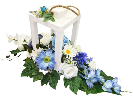 🌼STROIK BIAŁY LAMPION NA GRÓB POMNIK CMENTARZ DEKORACJA NAGROBNA WIENIEC BIAŁO NIEBIESKI 🌼
