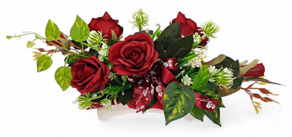 Realistyczne sztuczne kwiaty: Wysokiej jakości materiały doskonale imitujące naturalne róże, liście i dodatki.