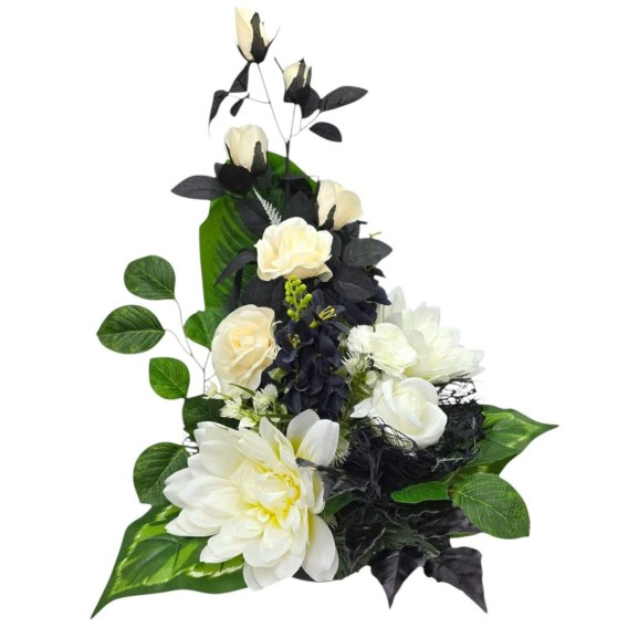 Kompozycje nagrobne z wysokiej jakości sztucznych kwiatów i roślin.