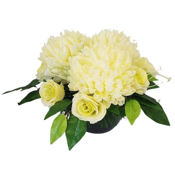 Kompozycje nagrobne z obciążeniem z wysokiej jakości sztucznych kwiatów i roślin.