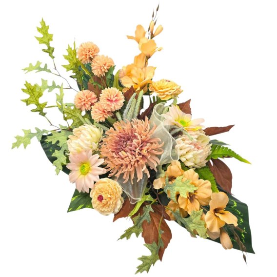 Kompozycje nagrobne z wysokiej jakości sztucznych kwiatów i roślin.
