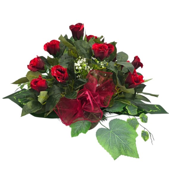 STROIK NA CMENTARZ KWIATY NA GRÓB POMNIK MISA Z OBCIĄŻENIEM CZERWONE RÓŻE