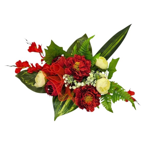 Kompozycje nagrobne z obciążeniem z wysokiej jakości sztucznych kwiatów i roślin.