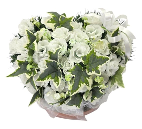 STROIK NA POMNIK SERCE KOMPOZYCJA KWIATOWA BIAŁE RÓŻE NA GRÓB