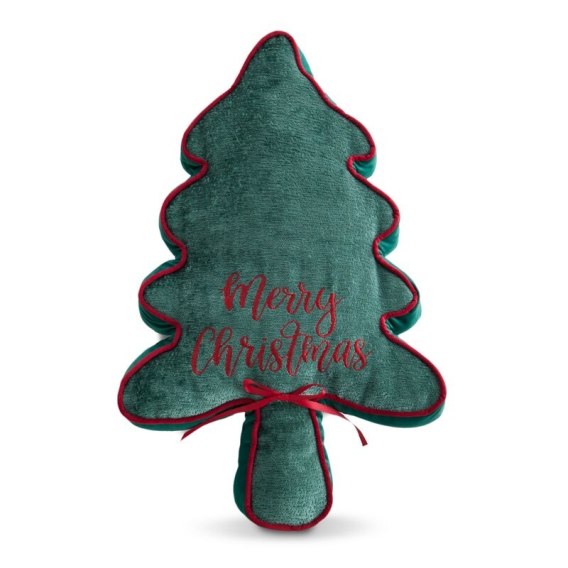 Welwetowa poduszka świąteczna w kształcie choinki szerokość: 45 cm, długość: 70 cm, kolor: zielony, Skład: 100% poliester