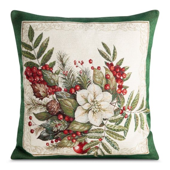 Świąteczna gobelinowa poszewka dekoracyjna szerokość: 45 cm, długość: 45 cm, kolor: zielony, Gramatura: 450 GSM, Skład: 85% poliester, 15% bawełna