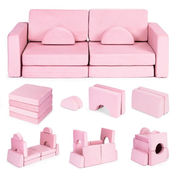 Sofa składana modułowa dla dzieci duża 2-osobowa DIY 10 miękkich poduch - różowa ECOTOYS