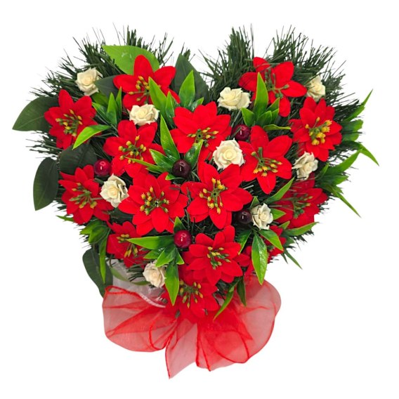 Stroik na cmentarz serce na boże narodzenie kompozycja kwiatowa