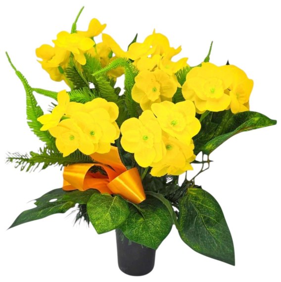 Kompozycje nagrobne z obciążeniem z wysokiej jakości sztucznych kwiatów i roślin.
