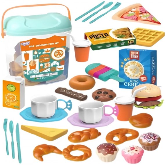WOOPIE Zestaw XL Jedzenia do Zabawy Produkty Spożywcze Fast Food Słodycze Ciastka Sztucice w Wiaderku 40 el.